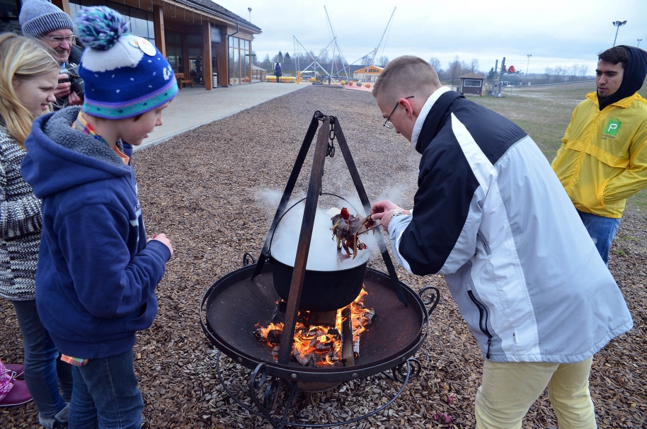 Savukārt, piektdien, 14.aprīlī, no plkst. 12:00 līdz 15:00 notiks olu krāsošana. Piedzīvojumu parka darbinieki būs sagādājuši izejmateriālus un vārāmo katlu, lai apmeklētāji savas līdzi paņemtās olas varētu izkrāsot dažnedažādās krāsās un rakstos.